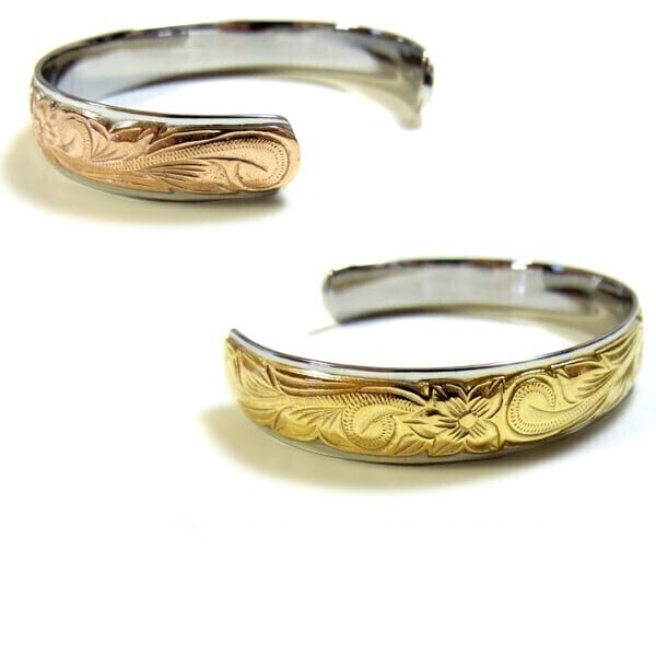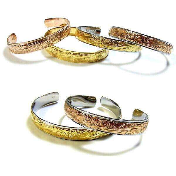 バングル(10mmワイド)[プルメリア・ナル] -Hawaiian Heirloom 316l- [gbg852] | ハワイアンジュエリー プリマカフェ|ハワジュ バングル ブレスレット 腕輪 ペアブレス レディース メンズ ペア 恋人 リンクコーデ プアメリア 花柄 スクロール 波 ステンレス アクセサリー k14 yg pg